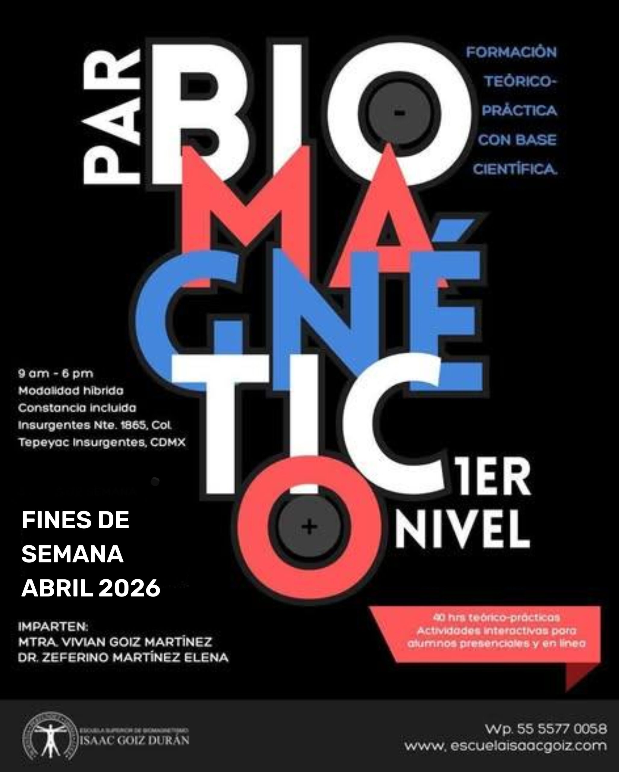 📌 Curso de Par Biomagnético ¿Qué es el Par Biomagnético? Es una técnica terapéutica desarrollada por el Dr. Isaac Goiz Durán. Utiliza imanes en puntos específicos del cuerpo para ayudar a recuperar el equilibrio y bienestar general. Es un método integrativo y no invasivo. 📗 Detalles del Curso (Segundo Nivel) 📅 Fecha: 26 al 30 de Enero de 2026. […]