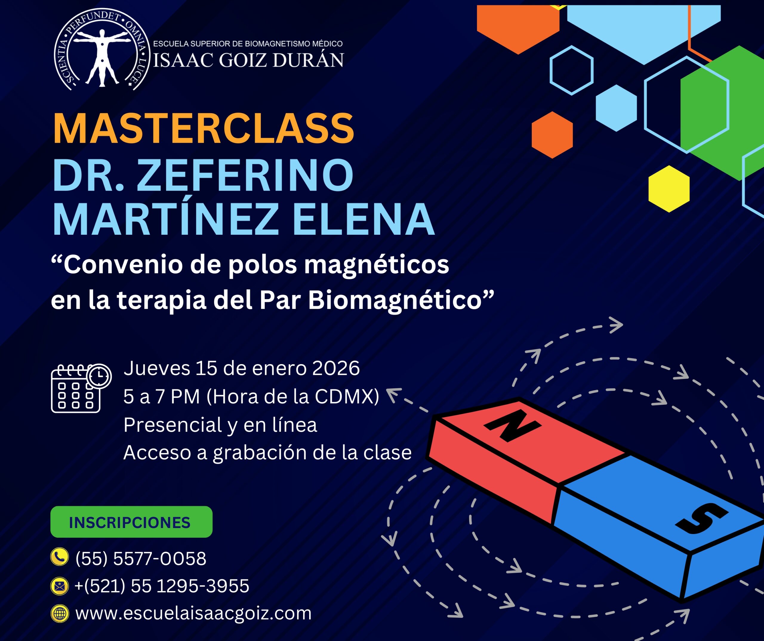 Escuela Superior de Biomagnetismo Avenida Insurgentes Norte #1865 Col. Tepeyac Insurgentes, CDMX, CDMX, Mexico📌 Curso de Par Biomagnético ¿Qué es el Par Biomagnético? Es una técnica terapéutica desarrollada por el Dr. Isaac Goiz Durán. Utiliza imanes en puntos específicos del cuerpo para ayudar […]